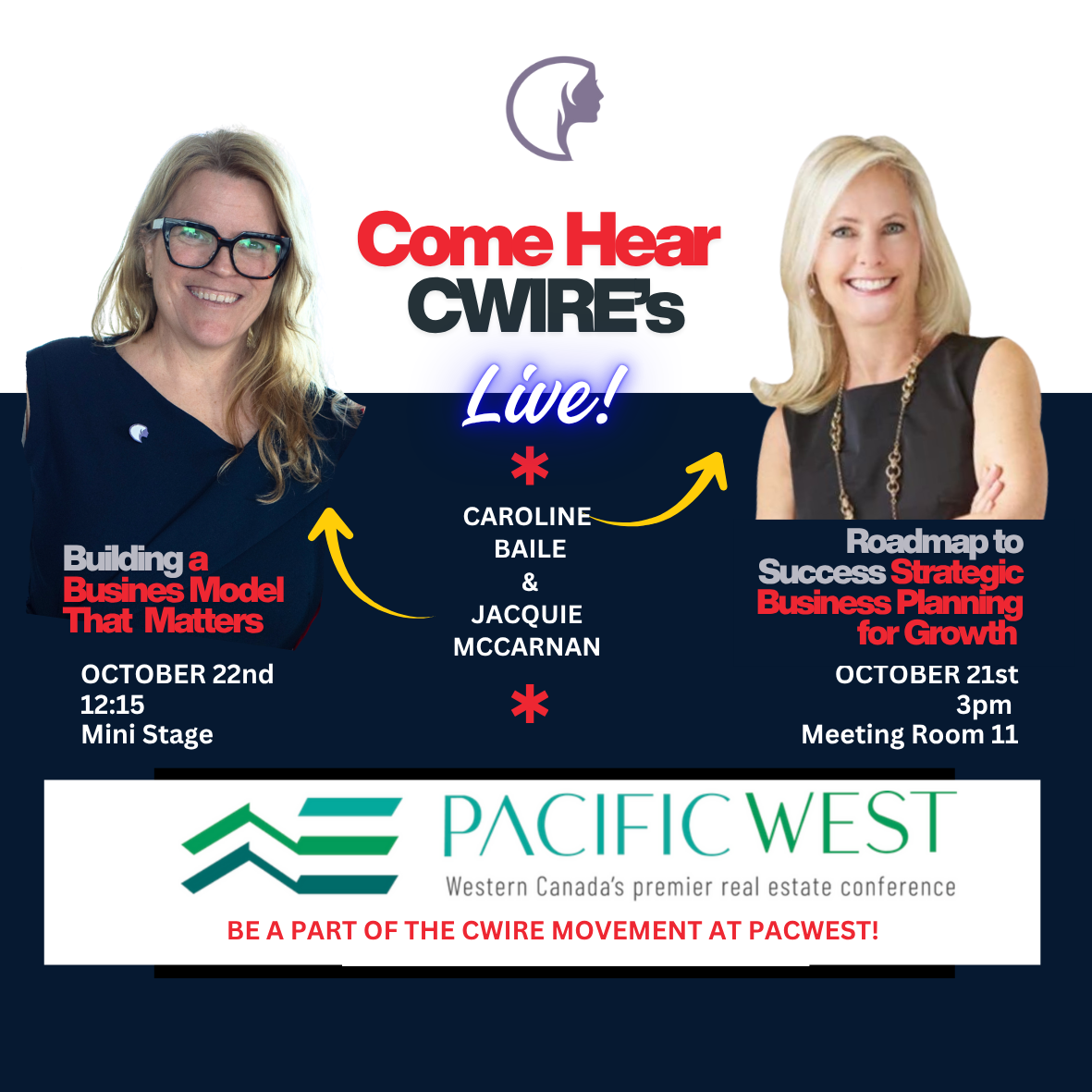 The PacWest 2025 conference in Vancouver is October 21st and 22nd and CWIRE leaders, Jacquie McCarnan and Caroline Baile will be speaking!